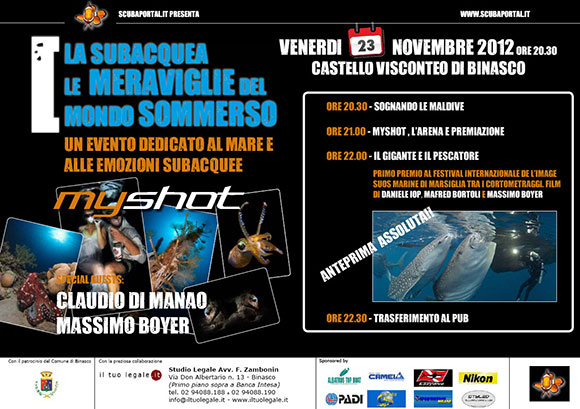 altri eventi interessanti tra cui Sognando le Maldive e la presentazione in anteprima nazionale del film Il Gigante e Il Pescatore, primo premio al Festival Internazionale De L’Image Suos Marine di Marsiglia tra i cortometraggi. Film di Daniele Iop, Mafred Bortoli e Massimo Boyer.