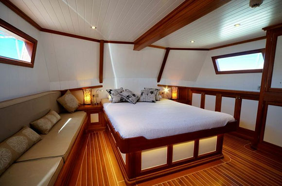 una spaziosa goletta con sette cabine doppie, tutte con aria condizionata, che