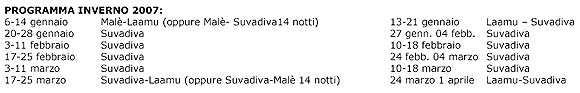 – crociera con partenza da Malè ed arrivo dopo due settimane di navigazione