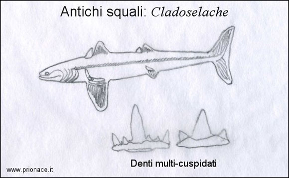 Un genere di squali molto antico è Cladoselache, al quale appartengono