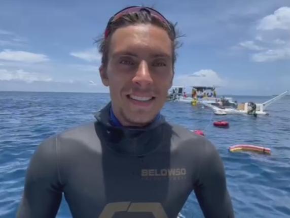Inoltre, ha segnato un secondo primato omologato raggiungendo la stessa profondità utilizzando una semplice maschera da apnea durante una competizione.