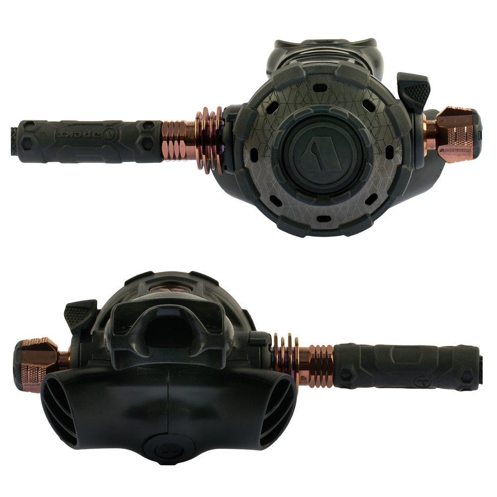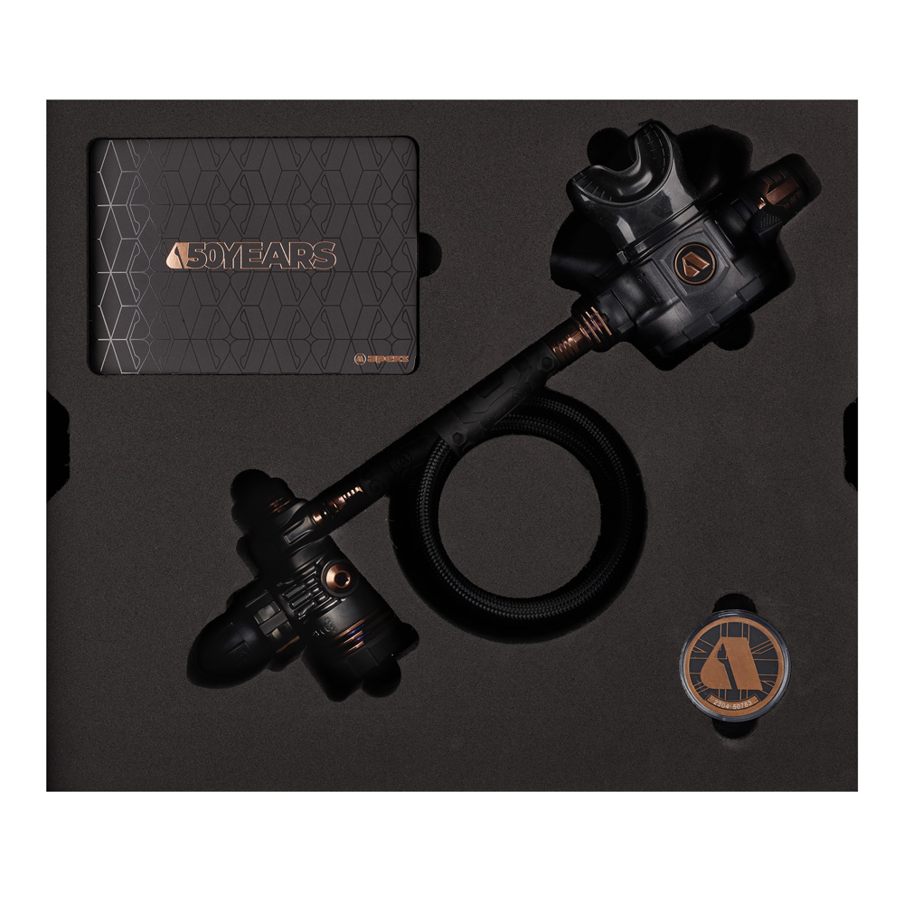Rivestito in Diamond Like Carbon (DLC) nero e Physicial Vapor Deposition (PVD) bronzo, l’MTX-RC 50 Year Anniversary Edition è un pezzo di storia delle immersioni Apeks, un erogatore in edizione limitata che celebra 50 anni di storia, di eccellenza tecnica e di ingegneria di precisione.