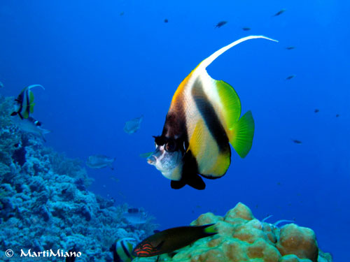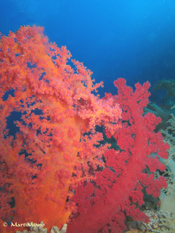 E poi ancora vasti giardini di corallo intatto dove è possibile ammirare acropore talmente grandi da lasciare senza fiato, cespugli di corallo nero e praterie di madrepore dai colori vivissimi; qui i coralli crescono piuttosto velocemente, favoriti dalla generosa quantità di luce e dal continuo ricambio dell’acqua dovuto alle correnti. Principalmente sono barriere coralline a frangenti spesso interrotte da stretti varchi sottomarini che loro chiamano “sharm” che ci regalano meravigliosi giochi di luce ed ombra.