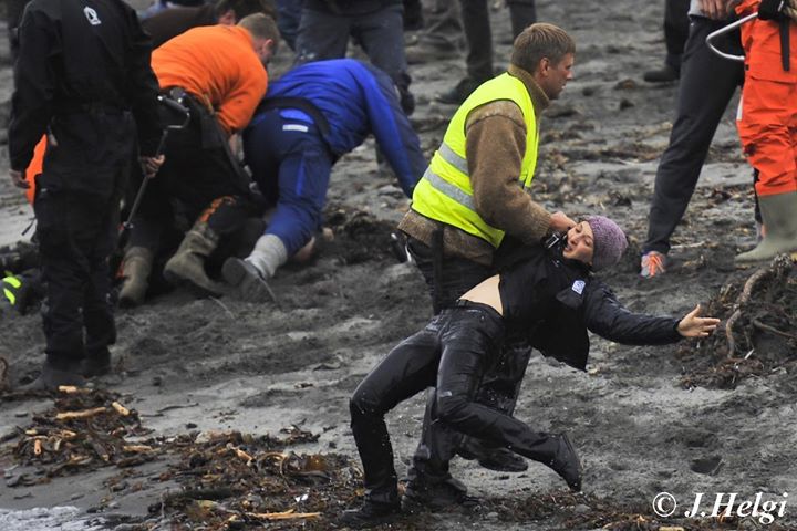 Circa 61 globicefali sono stati comunque spinti a riva e massacrati. Cinque volontari di terra si sono precipitati in acqua per schierarsi tra i cetacei e i cacciatori in attesa. Tutti e cinque i volontari sono stati afferrati dalla polizia e trascinati indietro sulla spiaggia, dove sono stati ammanettati e obbligati a sedersi, costretti a osservare la carneficina in corso.