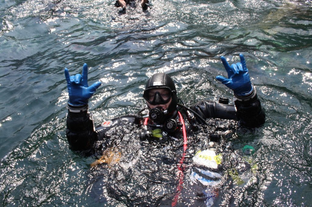 Alle 15.15 Danilo è riemerso, sventolando in aria il cartellino con la scritta ben visibile della quota raggiunta e non potendo altro che ricevere l’abbraccio e i complimenti da parte di tutto lo staff di supporto in acqua, dallo staff medico e da quello di superficie che ha gioito per il meritato trionfo tuffandosi in acqua per salutarlo!