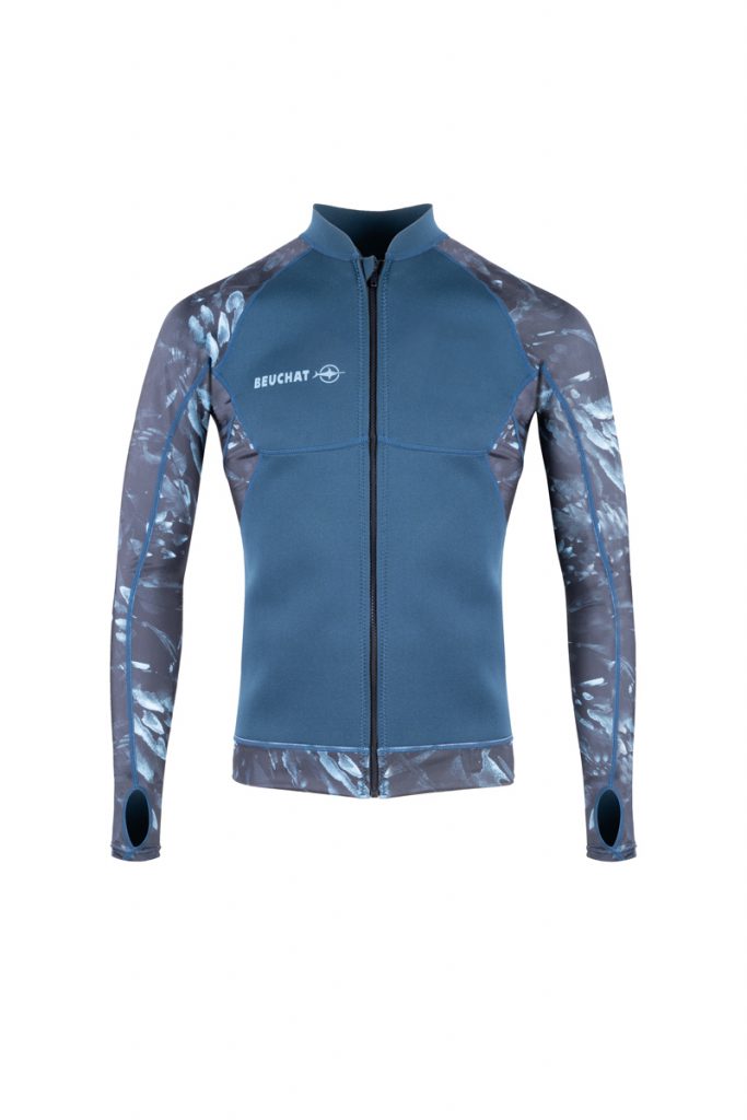 L’esclusivo motivo Beuchat “Seaweed” è una nuova creazione di Beuchat che richiama la bellezza dei fondali oceanici. Busto della giacca progettato in neoprene da 2 mm che garantisce una protezione termica ottimale, consentendo immersioni confortevoli anche in acque più fredde. Maniche in elastan con protezione UV UPF 50+, che garantiscono un’efficace protezione dai dannosi raggi UV del sole.