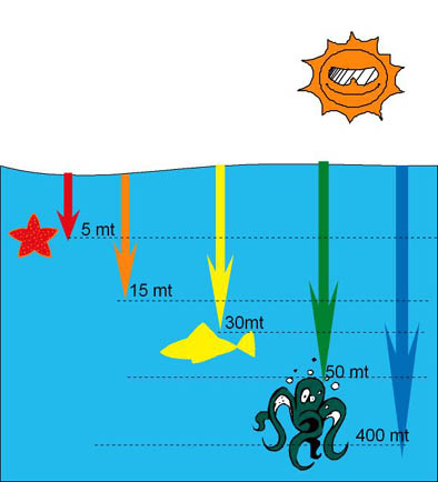 colore rosso, mentre i verdi e gli azzurri perdurano fino a profondità maggiori,