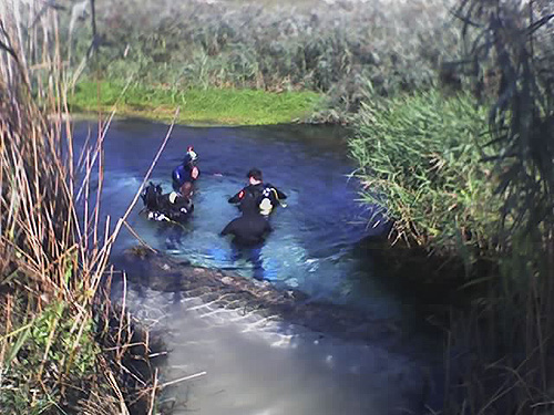 Lo staff di Gir capitanato dal subacqueo SSI Salvatore Orlando e il Centro culturale Filonide guidato dal Dott. Marcello Bellacicco giungono con gli altri componenti dell’escursione, alcuni della redazione di Grottaglie in rete altri del Centro Culturale Filonide, alla foce del fiume Chidro, appena usciti da San Pietro in Bevagna in direzione Torre Collimena.