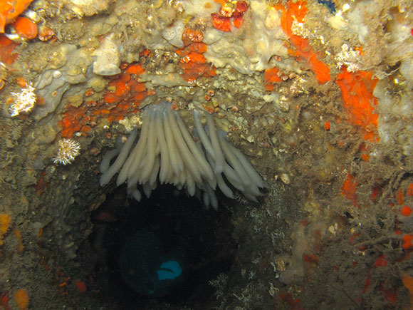 é la luce: dato che ospita microalghe simbionti (cianobatteri), questa spugna é