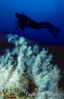 Ho visto rami di antipatari sui fondali di Stromboli, alla base della famosa sciara del fuoco sommersa e sulle pareti della dorsale della sciara, dove pochi sub son passati a dare un’occhiata reale. Le pareti della dorsale della sciara iniziano a precipitare nell’abisso a circa 60 m di profondià e li, dove per te c’è un confine netto, inizia un nuovo mondo, dove regna l’oscurità e la penombra, e spicca il chiarore dei rami degli antipatari. Qualcuno ha visto un ramo di antipatario presso l’isola della Formica (vedi http://www.mondomarino.net/servizi/seanews.asp?p=496&view=dett ), qualche altro ha recentemente segnalato la presenza di colonie fitte di antipatari in adriatico, alle Isole Tremiti (la segnalazione è del mio fraterno amico Paolo Fossati, vedi http://www.ecomatrix.it/Corallo%20Nero%20(Antipathes%20subpinnata ) e io stesso posso dire di aver visto personalmente delle belle e fitte colonie con ramificazioni gigantesche sulla secca di Atlantide, al largo di Favignana, nonché nel mare di San Vito Lo Capo, fuori la vecchia Tonnara del Secco, a partire dai 65 metri di profondità. Quindi specie rara, ma non rarissima, con diverse altre segnalazioni per l’Adriatico. Comunque sia, la colonia di Scilla è certamente una colonia importante. Augurandoci che la segnalazione dell’Ispra possa portare a un qualche risultato concreto, tipo convogliare l’attenzione sul patrimonio immenso e sulla diversità biologica del mare di Scilla e dintorni, ci auguriamo ancora una volta che l’unico a beneficiare di tutto ciò sia alla fine il nostro povero mare, che deve assistere inerme a ciò che l’uomo continua indisturbato a “fare” nei suoi confronti.