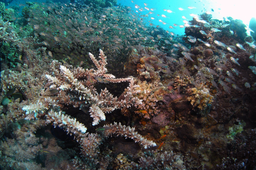 Ma torniamo a noi! Le crociere di cui vi parlavo sono due: la prima dal 19 al 27 luglio e la seconda dal 27 luglio al 3 agosto. Esse sono dedicate ad un approfondimento della barriera corallina, partendo da un breve excursus su come si sono formate le Maldive ed il suo reef milioni di anni fa. Durante le “passeggiate” con pinne e maschera si osserveranno i vari tipi di coralli costruttori della barriera e si comprenderanno meccanismi di crescita, nutrizione e riproduzione di questi fantastici animali. Per poi osservare nel dettaglio tratti di reef ed individuare gli organismi che vi abitano con le, spesso, complicate relazioni che tra loro intercorrono. Esattamente come succede in un quartiere di una grande città, ci sono coloro che forniscono servizi (per esempio le stazioni di pulizia), chi ruba la casa ad altri, chi il cibo, chi si imita qualcuno più potente per ottenere vantaggi, chi si innamora, chi si lascia… Si parlerà inoltre di eventi importanti che hanno messo a rischio la salute del reef come il coral bleaching del 1998 e lo tsunami del 2004 e dei problemi attuali. Si parlerà anche delle tecniche che oggi vengono studiate da scienziati di tutto il mondo per ripopolare le barriere più danneggiate.