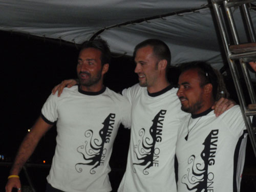 Sama (nostalgico facility manager egiziano), Sala (marinaio tuttofare) , Jango (Il Capitano), Mohamed (Il cuoco, l’insuperabile), Mohamed e Kaled ( gli instancabili autisti degli zodiac) … tutti grandissimi ed efficientissimi! E qui, da buoni italiani, una particolare nota di merito va al cuoco che ci ha deliziato ogni giorno di fantastici manicaretti che nulla avevano da invidiare alla cucina italiana !!! e io che volevo dimagrire in barca !!!