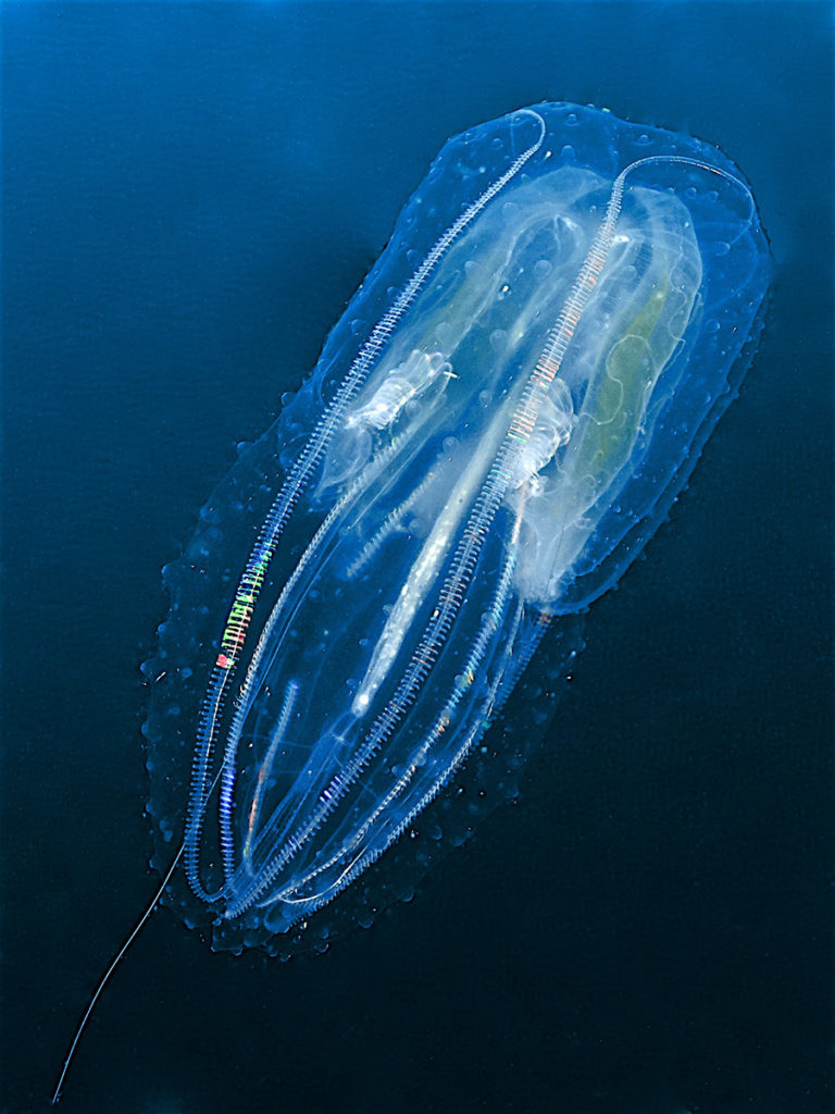 Si tratta di un bellissimo Ctenoforo. Gli Ctenofori sono un tipo animale, in qualche modo affini alle Meduse. Ma la sistematica li separa dalle meduse, facendone un tipo a parte. Fanno parte del macroplancton, organismi che vagabondano in balia delle correnti e che sono ben visibili a occhio nudo.