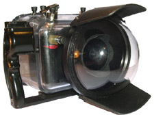 Lo scafandro FD-70 e’ caratterizzato da una chiusura ermetica tramite o-ring e una guarnizione sigillata ed è testato fino ad una profondità di 60 m (200 ft). La D-70 “scivola” nello scafandro FD-70 in un binario dedicato. Dopo aver posizionato la macchina all’interno dello scafandro, bisogna chiudere a scatto le fibbie situate sulla porta posteriore, assicurandosi così una chiusura ermetica dello scafandro.