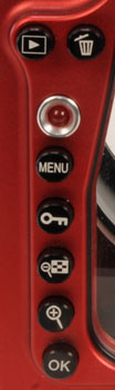 Tutti i comandi sono riportati all’esterno in modo manuale e i pulsanti studiati per un uso anche con i guanti, distanziati all’esterno in modo da evitare l’azionamento di comandi non desiderato. I simboli di lavoro sui comandi esterni sono identici a quelli dei comandi interni per un più intuitivo utilizzo anche per chi non ha preso ancora confidenza con la macchina; un ampio oblò posteriore permette una visione del display ottimale; è inoltre possibile inquadrare tramite un oculare esterno in linea con l’oculare della macchina; due fori M6 posti sotto lo scafandro offrono un punto di aggancio per l’applicazione di altri accessori (es. staffa per flash), lo stesso per un foro M8 e un foro M6 posti superiormente allo scafandro.