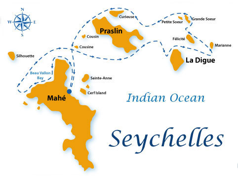 capitale Victoria, Praslin ,Silhouette, la Digue e un gruppo di più piccole (Curieuse,