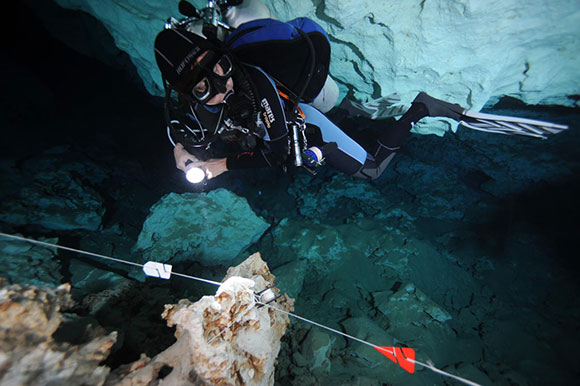 Foto 8. Navigazione nel cenote “Tux Kubaxa”, seguendo gli indicatori