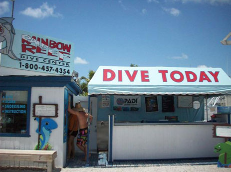 La sede del “Rainbow Reef Dive Center” nel Marina di Key Largo (FL)