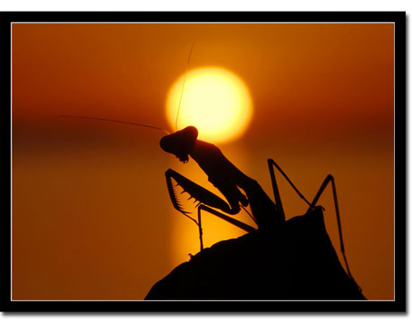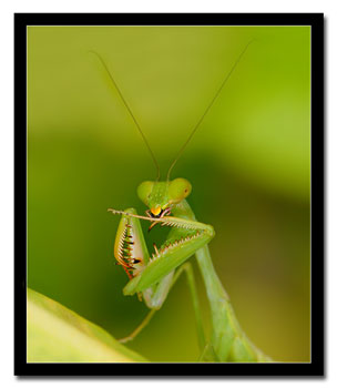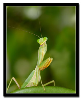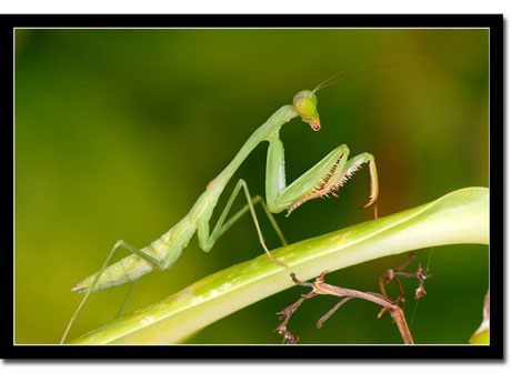 Mantide in caccia di prede. Si nutre di altri insetti che cattura con le caratteristiche zampe anteriori.