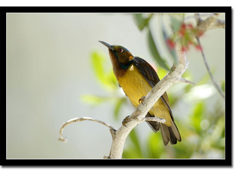 Una femmina del Colibrì Nectarina Jagularis. Le femmine hanno colori meno sgargianti dei maschi.