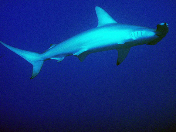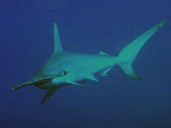 sulla punta Nord un’ombra si materializza. E’ uno squalo martello, cauto,