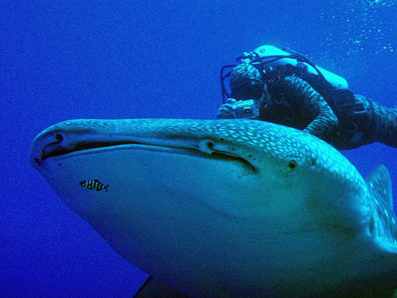 sfila per venti minuti lo squalo balena, Rynchodon typus, che nel suo