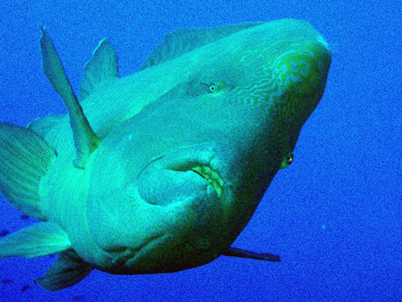 contemporaneamente. Mentre un grande pesce Napoleone si struscia alla ricerca di
