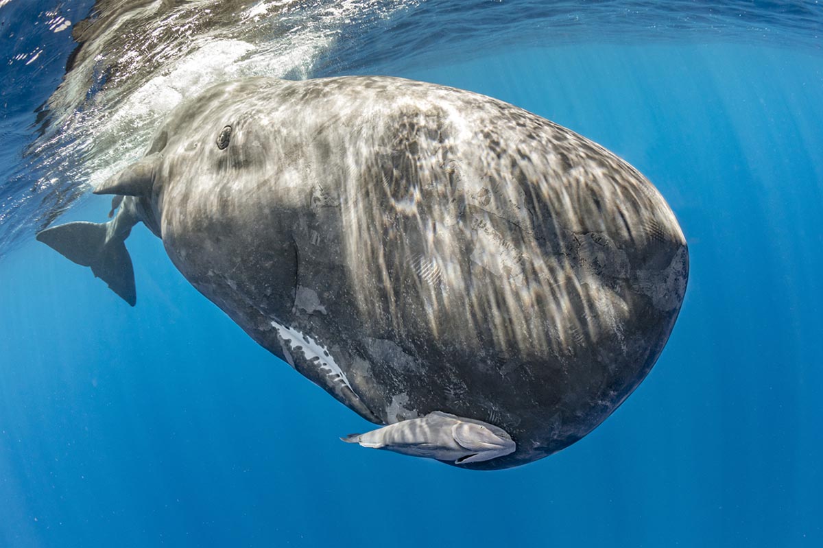 Ci andiamo da cinque anni consecutivi ed ogni volta restiamo entusiasmati dell’interazione quotidiana con pod (famiglie) di capodogli residenti, con gruppi di delfini e talvolta con i globicefali. Dopo i primi approcci, nuotare fianco a fianco con un capodoglio diventa fluido come avere a fianco il proprio compagno di immersione. Lentamente, al trascorrere dei giorni, ci abituiamo alla loro compagnia e superiamo l’ansia dei primi incontri. Essere in acqua indossando solamente maschera e pinne ci rende consapevoli dei nostri limiti, delle nostre emozioni : tutte le nostre percezioni sono amplificate. Essere in acqua solamente con il nostro compagno ed una famiglia di capodogli , od anche solamente con un singolo esemplare che ci guarda direttamente negli occhi , è un’esperienza indimenticabile.