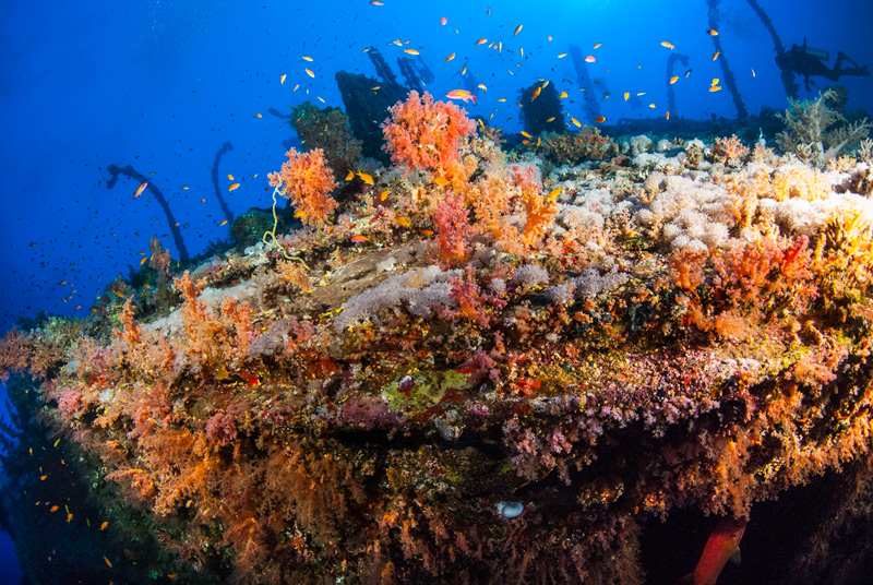 Esploriamo quasi l’intero periplo dell’isola compresi i relitti dell’Aida e del Numidia, quest’ultimo certamente fra i più bei relitti del Mar Rosso, trasformato in un enorme giardino di corallo che dalla  poppa a -70 mt sale fino in superficie in prossimità del reef. Ho un debole per questa nave a vapore datata 1901, il cui destino beffardo ne provocò l’affondamento al suo secondo viaggio mentre era diretta a Calcutta, forse a causa di un errore di manovra.