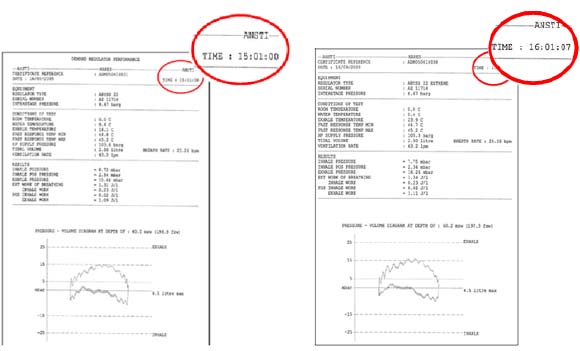 Condizioni del Test: temperatura dell’acqua: 0,6°C, volume ventilato: 62,5 l/m, profondità: 60 mt