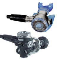 Il primo stadio deve fornire aria alla corretta pressione al secondo stadio, riducendola da 200-300 bar ad una pressione di circa 8-10 bar superiore a quella ambientale. Il secondo stadio riduce ulteriormente questa pressione intermedia raggiungendo quella ambientale ed erogando aria per la quantità che viene richiesta durante l’inspirazione: è’ in questo momento che la pressione diminuisce creando una differenza tra i due lati del diaframma del secondo stadio che viene tirato all’interno, spingendo la leva di domanda e aprendo la valvola che permette all’aria di uscire. Quando termina l’atto dell’inspirazione la pressione aumenta spingendo indietro il diaframma e chiudendo il flusso d’aria. Esistono due tipi di erogatore: monostadio, a doppio corrugato, e bistadio ad una sola frusta. Erogatore monostadio Questo tipo di erogatore incorpora sia il primo che il secondo stadio in un unico sistema montato sulla rubinetteria. Da qui partono due corrugati che si ricongiungono in un solo boccaglio contenente valvole di espirazione ed inspirazione in modo che l’aria arrivi pulita dalla bombola da destra e se ne esca, una volta consumata, passando per il tubo di sinistra su di una valvola di regolazione agganciata alla rubinetteria. Il vantaggio evidente di questo sistema è che non rilascia bolle davanti al boccaglio, utilità particolarmente cara ai fotografi. Erogatore bistadio Il più diffuso erogatore a frusta singola monta il primo stadio sulla rubinetteria della bombola e il secondo nel boccaglio collegato al primo tramite una frusta.