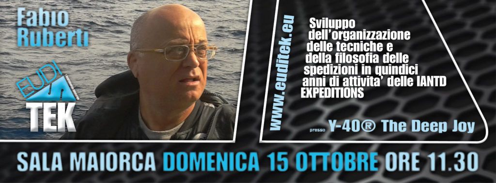 La conferenza esaminerà l’organizzazione, le tecniche e la filosofia delle spedizioni portate al termine in quindici anni di attività delle IANTD Expeditions. Le IANTD Expeditions nascono nel 2003 da un’idea di Fabio Ruberti, presidente della IANTD Srl, il progetto trovava fondamento su una precedente esperienza di venticinque anni di esplorazioni di relitti sommersi.