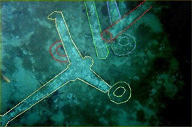 esse addirittura sovrapposte. Le 4 ancore erano quelle di riserva situate sulla