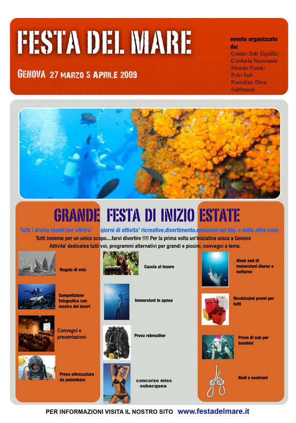 Dal 27 Marzo al 5 Aprile 2009, presso la Fiera di Genova si svolgerà la manifestazione denominata Festa del Mare.