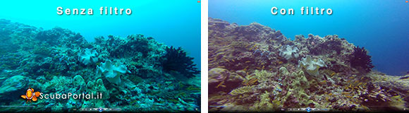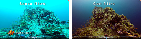Nei primissimi due-tre metri di profondità il  filtro tende ad accentuare la dominante rossa ma già scendendo di qualche metro il risultato è completamente diverso. Senza filtro le immagini sono piatte e completamente azzurre mentre con il filtro i colori vengono recuperati e la qualità delle riprese, pur perdendo un po’ in luminosità, è decisamente migliore.