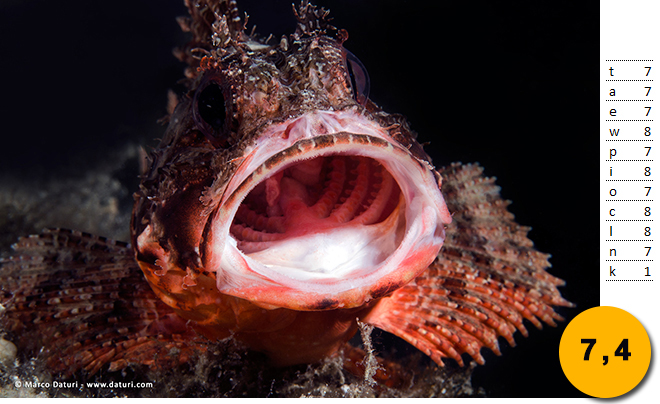 La foto dello scorfano è stata realizzata nel 2014 con una reflex Nikon D7000 con due flash Sea&Sea D1 e uno scafandro Nimar durante un’immersione in solitaria vicino a riva. Mi sono appassionato di fotografia ed esercitato molto soprattutto nella macro del Mediterraneo. Uno scorfano che spalanca la bocca rende lo scatto più originale dei soliti ed è stato possibile grazie all’osservazione all’intuizione, non alla fortuna.