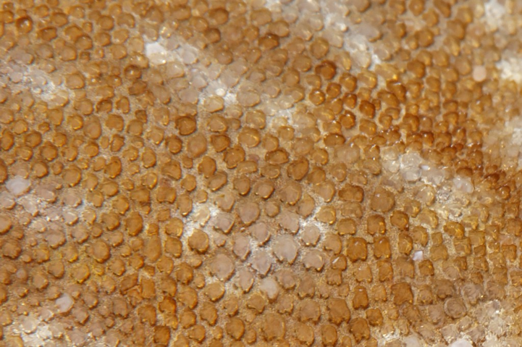 Macrofotografia della pelle di uno Squalo Tappeto (wobbegong sfrangiato, Fam. orectolobidae) coi dentelli cutanei in bella evidenza.