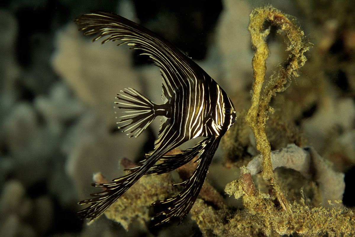 Platax batavianus fu descritto formalmente per la prima volta nel 1831 dallo zoologo francese Georges Cuvier con la sua località tipo indicata come Giacarta. Il nome specifico si riferisce alla località tipo di Batavia , il nome coloniale di Giacarta. Platax batavianus si trova nelle barriere coralline intorno all’Indo-Pacifico e dei reef corallini tropicali, compresa la Grande Barriera Australiana. I giovani e gli adulti hanno una colorazione e una morfologia molto diversa: gli adulti sono argentati con una barra scura attorno all’occhio e una debole sul dorso, hanno pinne marroni e la forma di un ovale. I giovani, di colore marrone a barre bianche verticali, hanno pinne lunghissime e frastagliate che attribuiscono a questi pesci un aspetto davvero splendido. Platax batavianus è una specie solitaria, ma può essere raramente incontrata in coppia o in piccoli gruppi. Pur essendo un pesce all’apparenza tranquilla, avvicinarlo non è affatto semplice; si sposta lentamente ma continuamente e arrivare a tiro fotografico è un’impresa davvero ardua.