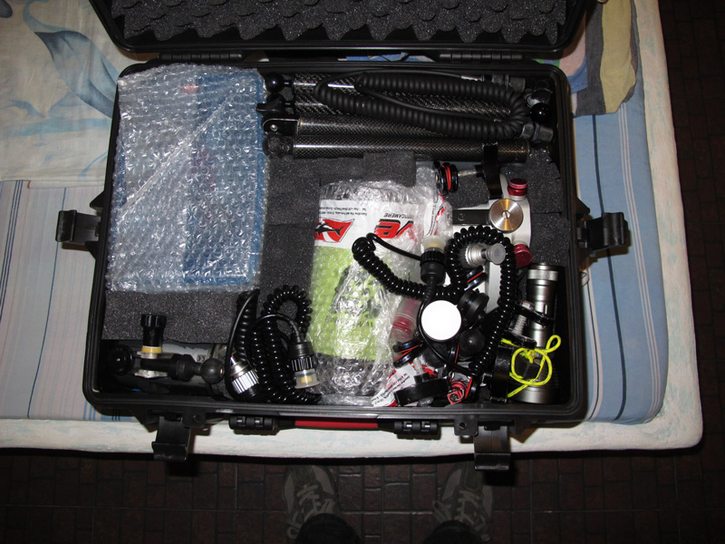 Sia per via delle regole Covid odierne che per comodità, se decidiamo di stivare una parte dell’attrezzatura, possiamo usare per contenerla una valigia stagna antiurto come quelle Pelican, Hprc o altre marche. Se la usate come bagaglio a mano fate attenzione alle dimensioni esterne, se invece la stivate come bagaglio extra siete sicuramente più liberi. Io ne uso uno con trolley, che mi viene utile sia se vado in barca (se c’è spazio) per riporre l’attrezzatura che non si deve bagnare, sia quando spedisco in stiva alcune attrezzature. Nella mia riesco a farci stare due custodie senza oblò, un flash, attrezzi, cavi e altri piccoli accessori.