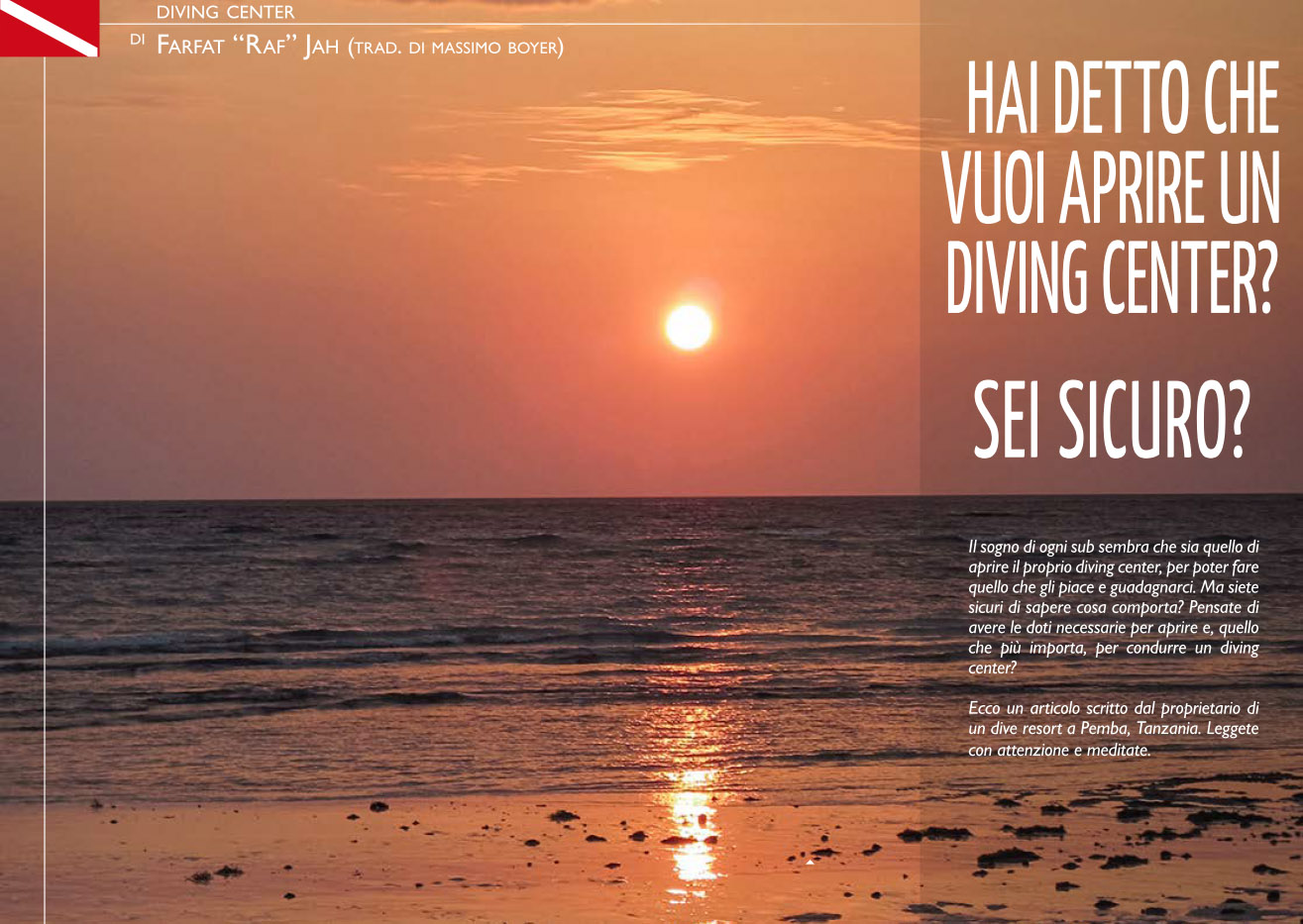 Il sogno di ogni sub sembra che sia quello di aprire il proprio diving center, per poter fare quello che gli piace e guadagnarci. Ma siete sicuri di sapere cosa comporta? Pensate di avere le doti necessarie per aprire e, quello che più importa, per condurre un diving center?