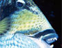 Primo piano di un Balistes fuscus, si nota bene la pinna dorsale rialzata. (Foto Roberto Sozzani) |