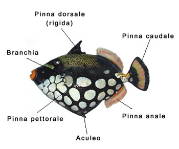 Il Balistide non è provvisto di pinna ventrale, mancanza sopperita da un aculeo rigido che può essere alzato tendendo la tasca cutanea in cui è celato.