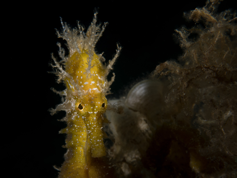E quando non ci sono le acciughe? Beh, la sosta di sicurezza si sposta nella vicina baia dove a soli 5 m di profondità, lontano dalla confusione e dai pericoli dei Picchi, vivono tranquilli alcuni esemplari di cavalluccio marino.