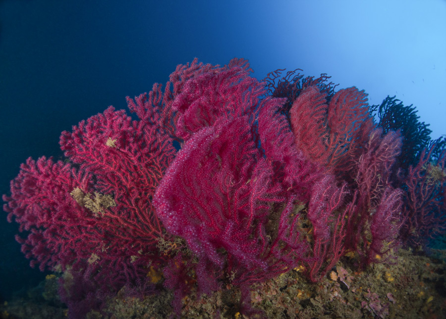 Per i subacquei più esperti sul fondo, appena fuori dalla parete, un gruppo di massi ospita splendide gorgonie rosse. Tra le loro ramificazioni, come fossero decorazioni, possiamo scorgere stelle gorgone e uova di calamari. In agguato e ben mimetizzati in questa foresta subacquea grossi scorfani rossi aspettano pazienti le loro prede. Lunghe antenne che fuoriescono dai massi tradiscono invece la presenza di timide aragoste. Non sempre ma con un po’di fortuna, in disparte sul fondale, possiamo imbatterci nel più sottile di tutti i pesci: l’affascinante pesce San Pietro.
