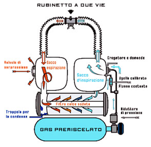 Altro limite di questo sistema è che non è possibile, come per i SCR-CMF, adattare il flusso alla miscela, in quanto, una volta costruiti i sacchi polmone in funzione di una certa percentuale d’O2 nella bombola, possiamo solo impiegare miscele con percentuali d’ossigeno maggiori, con conseguente “spreco” di gas.