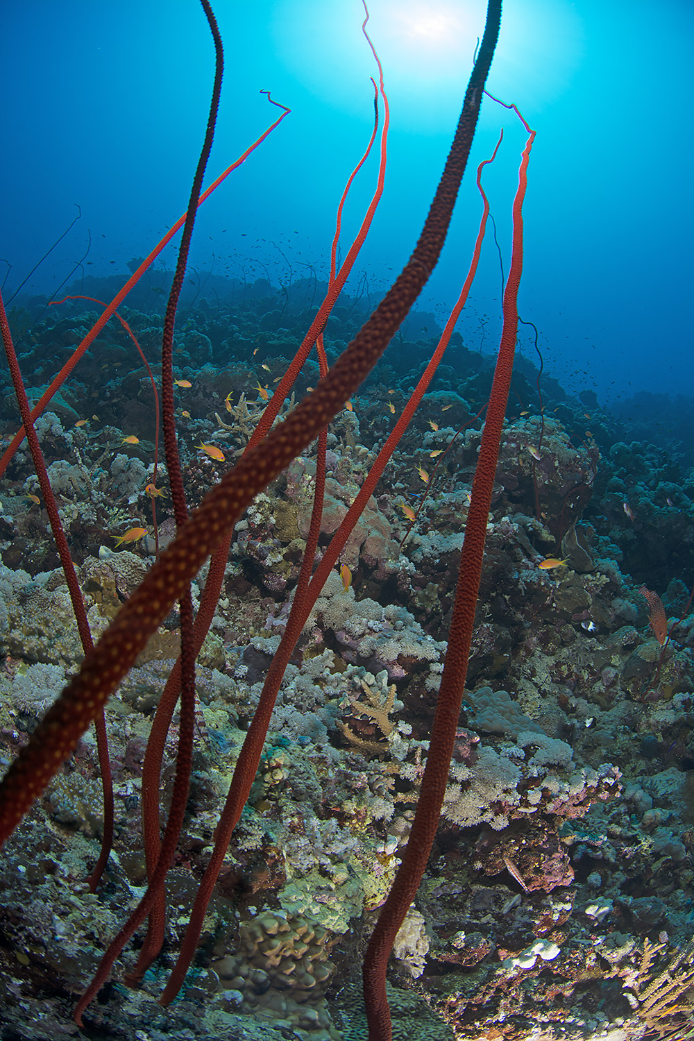 Ma dovunque i reef hanno dispensato a piene mani una vita rigogliosa, permettendo di spaziare (dal punto di vista fotografico) dall’ambiente alla macro, in un festival di colori. Che ci ha permesso di sbizzarrirci sui temi fotografici del workshop: la ricerca di soggetti particolari, il modo migliore per isolarli dall’ambiente mantenendo le informazioni necessarie, le tecniche di illuminazione per miscelare al meglio la luce naturale con quella del flash (illuminatore).