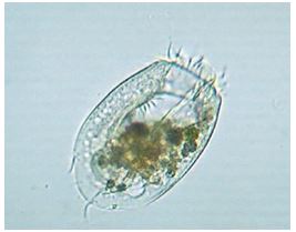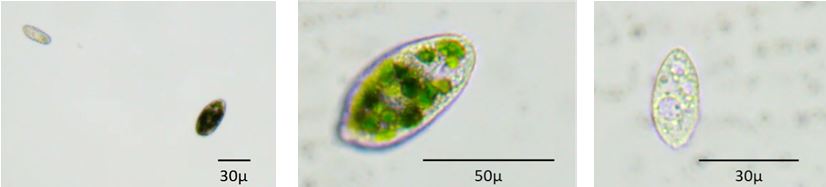 Le cellule isolate (Fig. 9) presentano una forma ovale con cilia lungo tutto il contorno cellulare. All’interno delle cellule, si osserva un citoplasma di color verde. Le dimensioni delle cellule sono comprese tra i 40 e i 50 µm. Non è stato possibile determinare il genere di appartenenza a causa di caratteri morfologici particolarmente diffusi in vari raggruppamenti tassonomici.