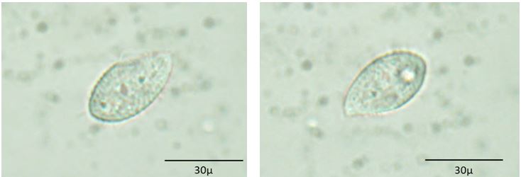 Le cellule isolate (Fig. 8) presentano una forma ovale con cilia lungo tutto il contorno cellulare. All’interno delle cellule, si osservano formazioni vacuolari. La dimensione più lunga delle cellule è di circa 30 μm. Non è stato possibile determinare il genere di appartenenza a causa di caratteri morfologici particolarmente diffusi in vari raggruppamenti tassonomici.