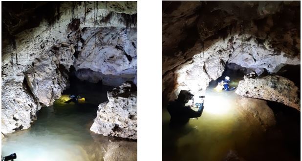 Campionamenti della Grotta dei Laghi eseguiti dai subacquei (Leonardo Canale e Alessandro Noferi) della PSAI Italia.