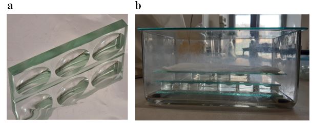 I vetrini a tre depressioni così preparati sono stati conservati in una camera umida (Fig. 5b), in maniera tale da evitare l’evaporazione dei liquidi in essi contenuti.